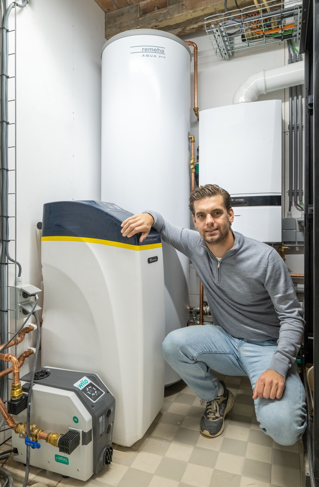 Lobbezoo is een echt familiebedrijf, inmiddels geleid door Glenn Lobbezoo, derde generatie in de zaak. Samen met zijn ouders en een team van in totaal elf medewerkers is het bedrijf actief in cv-installaties, airconditioning en complete renovatieprojecten. “Ik denk dat we drie of vier van dit soort grote projecten per jaar doen,” vertelt Glenn. “Het pand werd volledig gestript. Alles wat met de werktuigbouwkundige installatie te maken had, kwam opnieuw binnen: riolering, ventilatie, gas- en waterleidingen, sanitair en natuurlijk de vloerverwarming.”