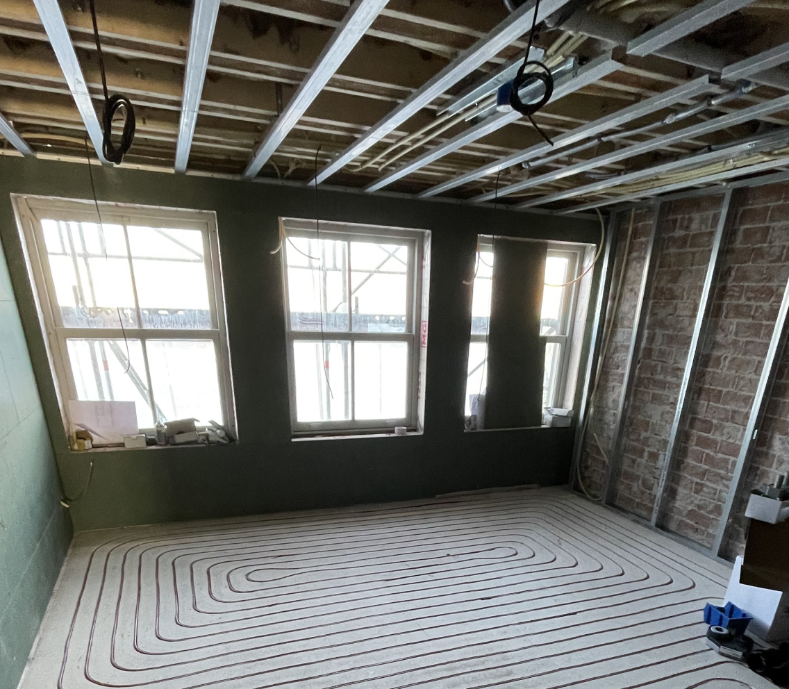 Bij Amstel 274 werd vloerverwarming gelegd op vijf verdiepingen, deels ingeslepen in bestaande vloeren en deels gemonteerd op staalmatten. “Inslijpen vereist een andere aanpak dan monteren op staalmatten, maar door onze werkwijze sluiten die naadloos op elkaar aan. Zo houden we het overzicht en zorgen we dat alles volgens plan en met de gewenste kwaliteit wordt uitgevoerd. Daarnaast leggen we alles vast met foto’s en verwerken we dat in een opleverrapport, samen met het verlegplan, de afpersrapporten en de flowstaten van de verdelers. Dat vormt een extra kwaliteitsborg voor de klant.”